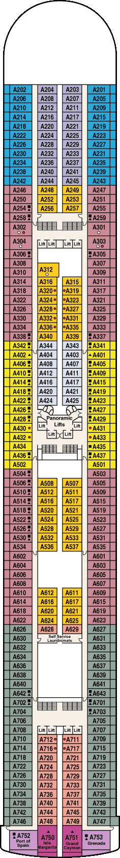| Dekken: | Caribe dek, Baja dek, Aloha dek, Riviera dek | |
