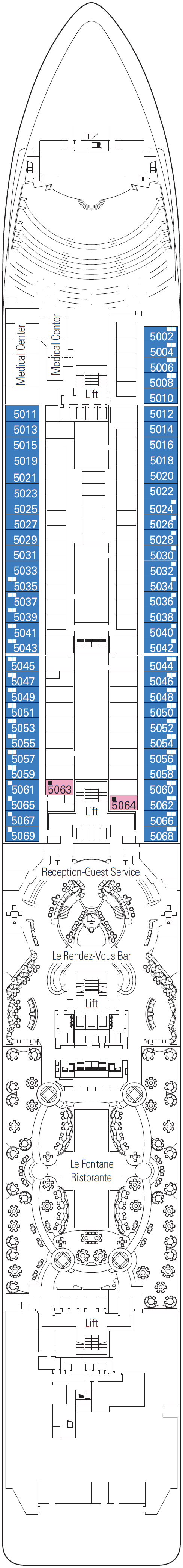 | Dekken: | Deck 5 - Petrarca, Deck 8 - Tasso, Deck 9 - Ungaretti, Deck 10 - Carducci, Dek D'annuzio | |